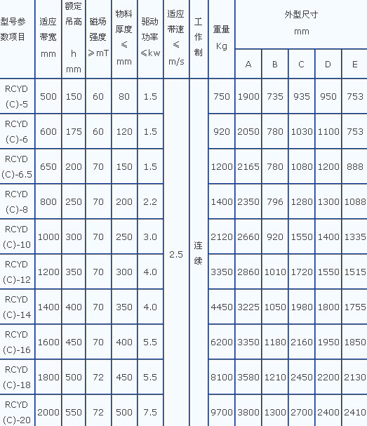 RCYD(C)系列永磁自缷式除铁器是由高性能永磁磁芯、弃铁皮带、减速电机、框架、滚筒等部分组成,与各种输送机配套使用。用于从非磁性物料中自动清除0.1-25公斤重的铁磁性物质。其内部磁路采用计算机模拟设计、完善的双磁极结构,保障整机在恶劣环境中无故障长期运行。