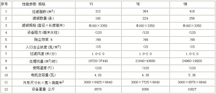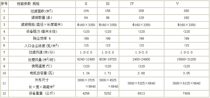 GA系列大气反吹袋式除尘器规格及技术性能表 |