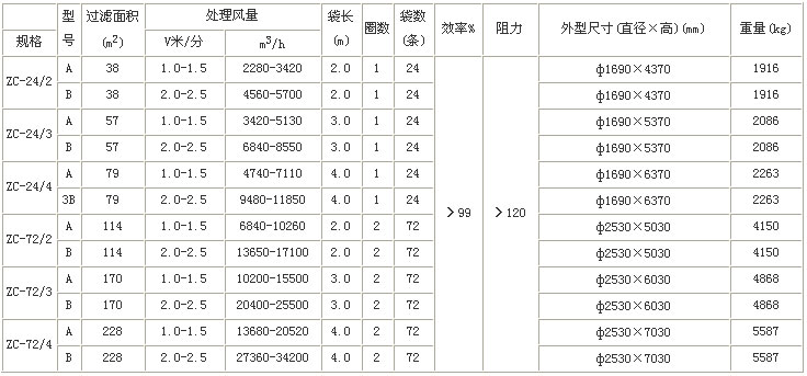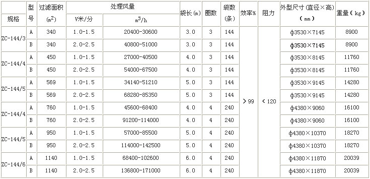 等许多部门。 用户选用应注意对温度高,浓度大,颗粒细的粉尘应选用A型,反之用B型为宜,如浓度大于15克/米3前面应加一级