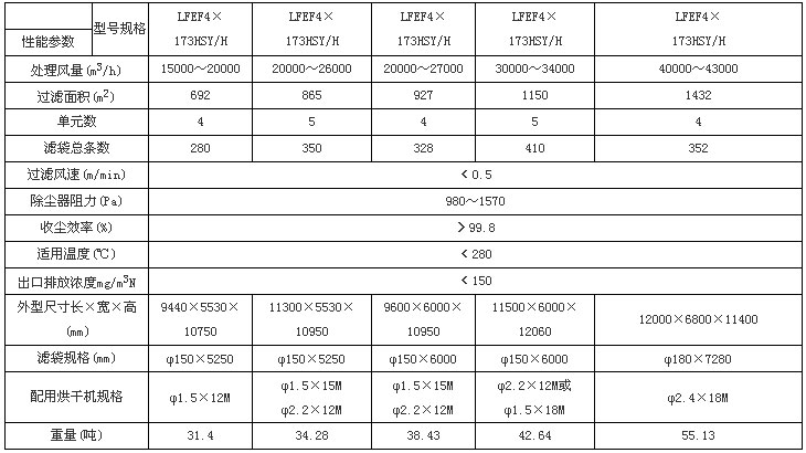 LFEF系列烘干机玻纤袋除尘器是国家建材局合肥水泥研究设计院专业为φ1.5×12M、φ1.5×15M、φ2.2×12M、φ2.4×16M、 等规格的烘干机烟气除尘开发研制的新产品,该产品采用获得一九八九年度部级科学技术进步奖的立窑正经纤袋除尘新技术, 微机控制分室反吹、定时、定阻清灰,温度检测显示等,使玻纤袋除尘器在烘干机烟气除尘中高效、稳定运行,烟囱出口排 放浓度低于国家规定的150mg/m3n排放标准(实际可保证≤150mg/m3n)。该设备可不停机分室换袋,操作简单,安全可靠,运 行费用低,是目前国内烘干机烟气除尘最理想设备。 |